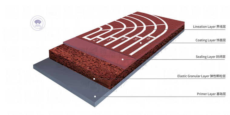 采用EDPM橡膠顆粒作為底層,聚氨酯底膠封底,聚氨酯面漆和膠漿作為面層鋪設(shè)而成,具有彈性好、色澤鮮艷、強(qiáng)度高、耐磨、防滑、耐低溫、防震隔音經(jīng)久耐用等特點(diǎn)。由于其采用獨(dú)特的聚氨酯PU封底,在高寒地區(qū)雨雪延伸不進(jìn)塑膠跑道彈性層,是我國(guó)高寒地區(qū)首選體育運(yùn)動(dòng)場(chǎng)地田徑跑道產(chǎn)品。