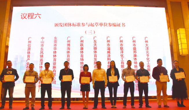 2020年11月24日,廣州市質(zhì)量強(qiáng)市工作領(lǐng)導(dǎo)小組辦公室牽頭舉行的運(yùn)動(dòng)場(chǎng)地合成材料面層產(chǎn)品質(zhì)量提升工作成果暨團(tuán)體標(biāo)準(zhǔn)發(fā)布會(huì)在番禺美麗豪酒店召開。廣東省體育設(shè)施制造商協(xié)會(huì)承辦,廣州博海體育設(shè)施有限公司等企業(yè)代表出席了大會(huì)。